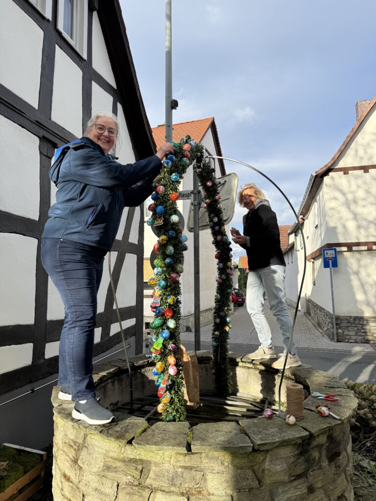 Der Brauchtumsverein hat einen Osterbrunnen auf dem stillgelegten Brunnen neben dem Vereinsheim des Brauchtumsvereins gestaltet.