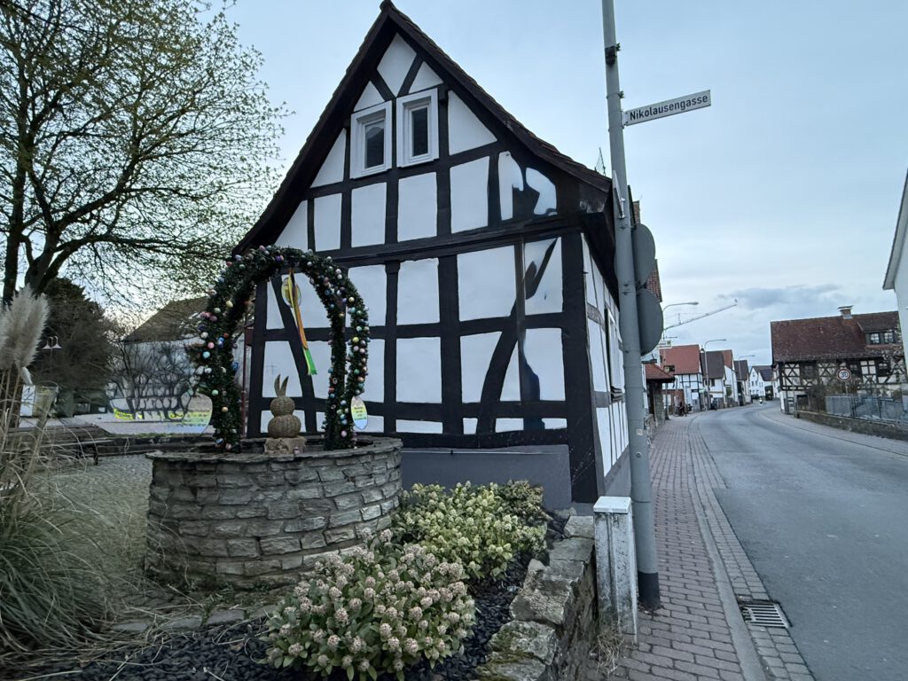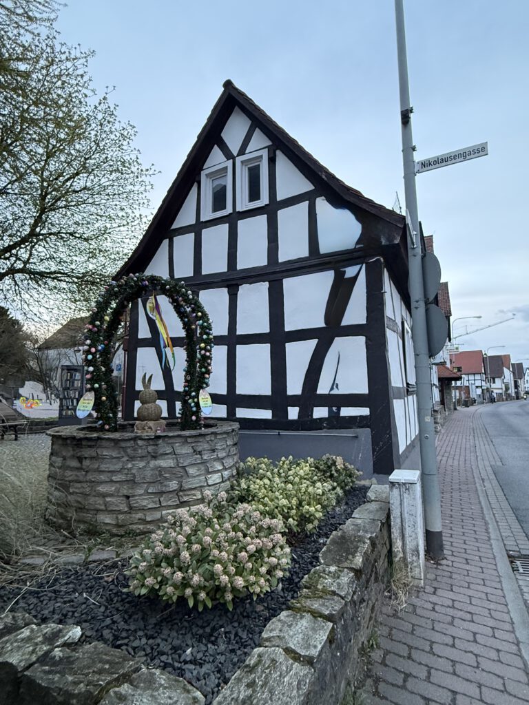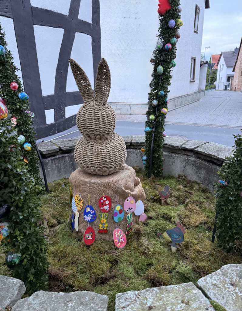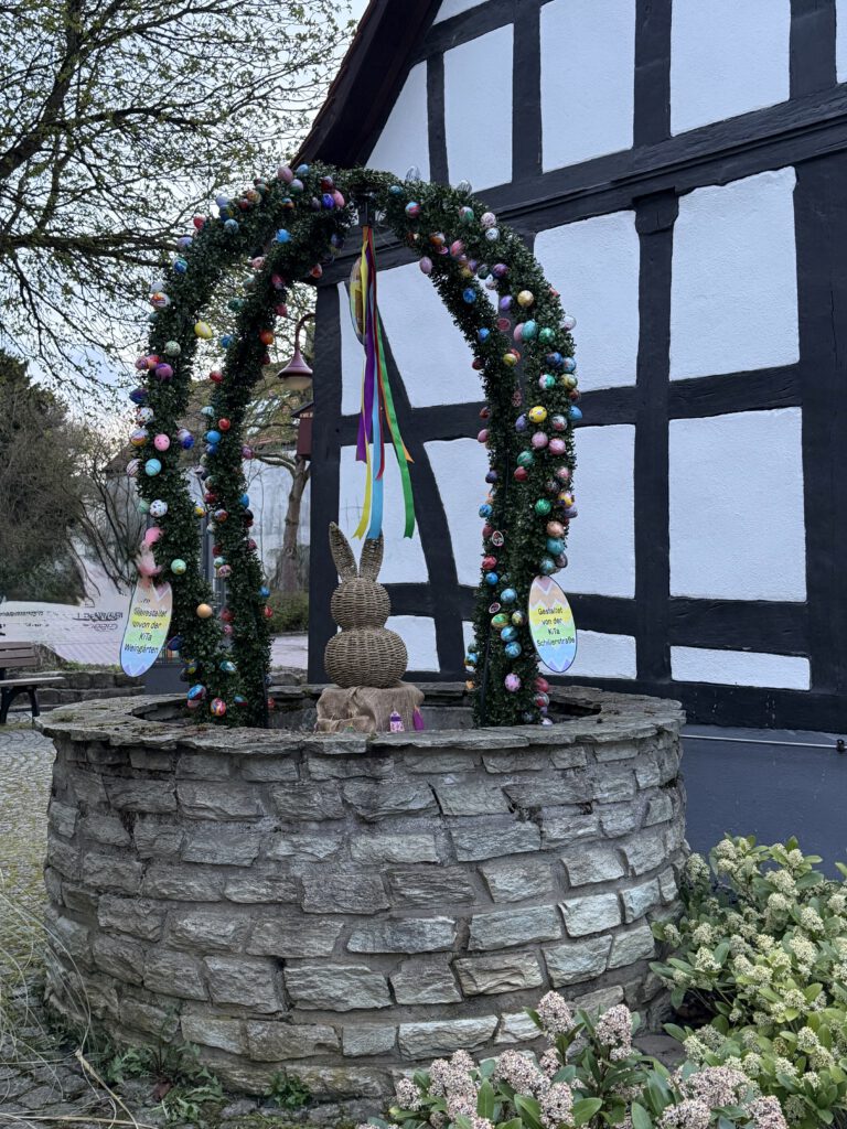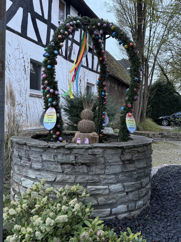 Am Karfreitag, wenn die Kinder und Eltern an den generellen Osteraktionen des Brauchtumsvereins, wie Osterhasen backen, Eier färben und Osternest teilnehmen, gibt der Brunnen jedenfalls einen schönen Rahmen ab.